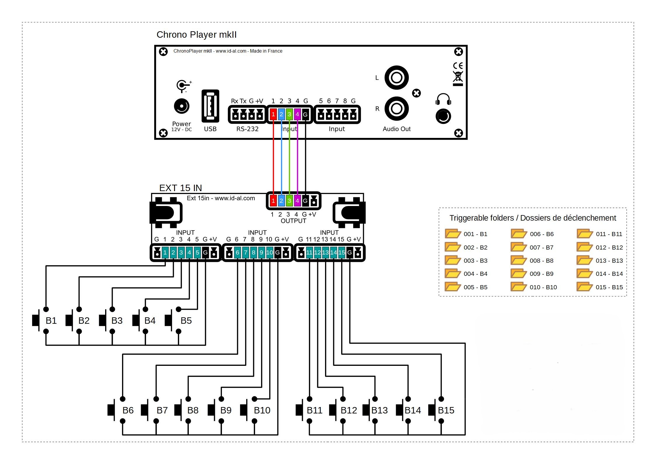 - Connexion d'un Ext15In avec un Chrono Player mkII