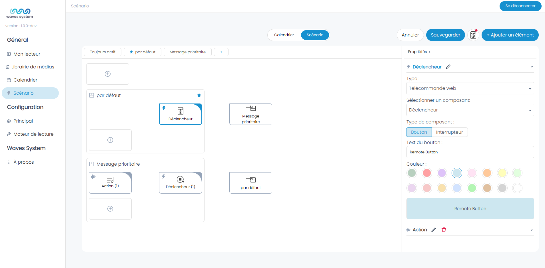 Le déclencheur dans l’état "Par défaut" est maintenant de type "Télécommande web".