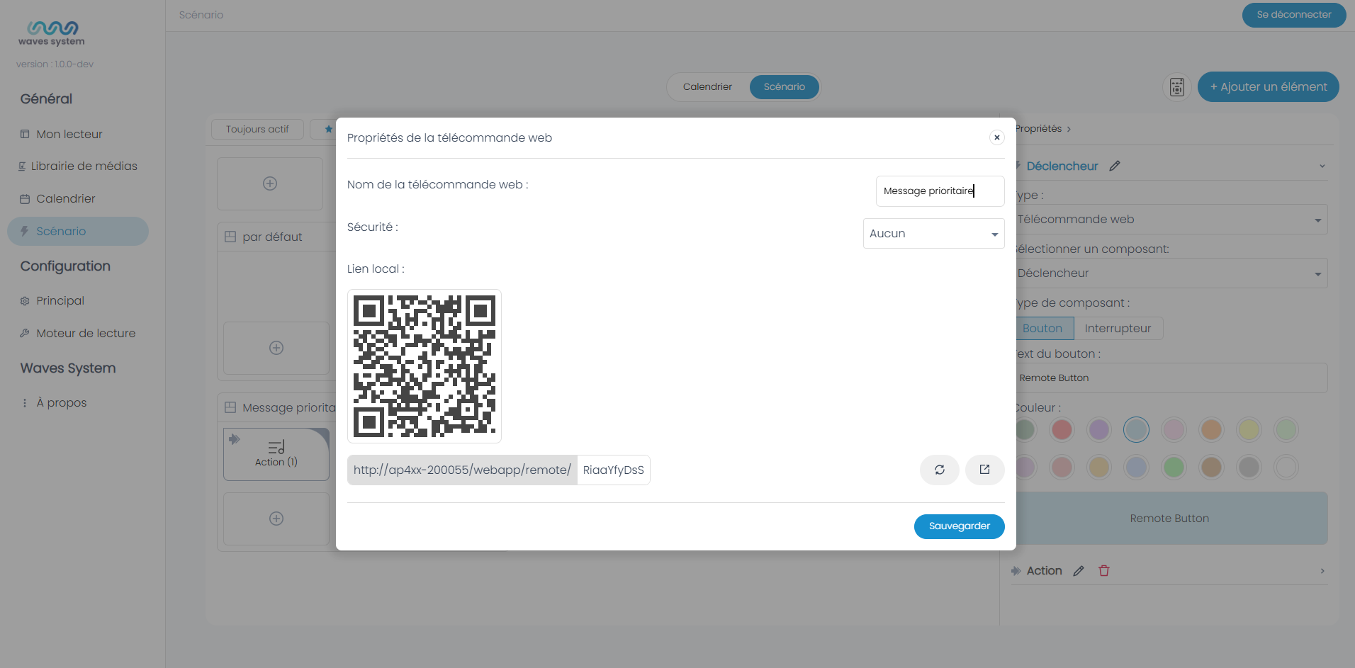 Astuce : Vous pouvez imprimer le QR code. Dès lors, un téléphone connecté au même réseau que le player peut accéder à la page et déclencher la playlist "Message prioritaire".